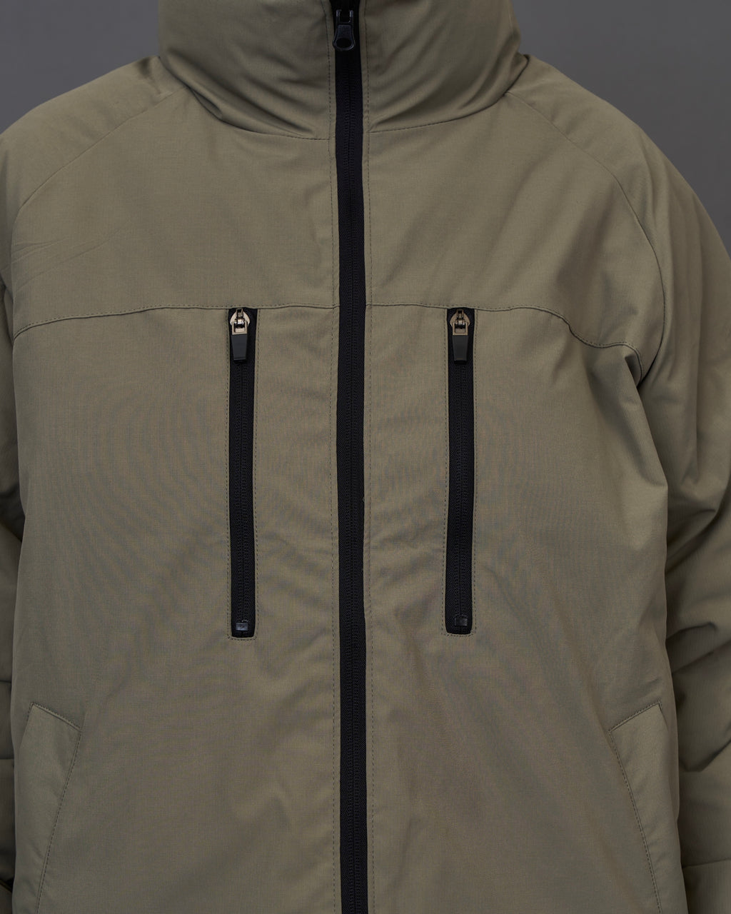 首元までしっかり覆うハイネックデザインが特徴的なダウンジャケット。シンプルなルックスに機能的なディテールをプラスし、冬のアウターとして頼れる一枚に仕上げました。程よいオーバーサイズシルエットで、スウェットやフーディーの上からも羽織りやすいのが魅力。サイドポケットや袖のワッペンディテールがさりげないアクセントとなり、都会的なミリタリーテイストを演出します。