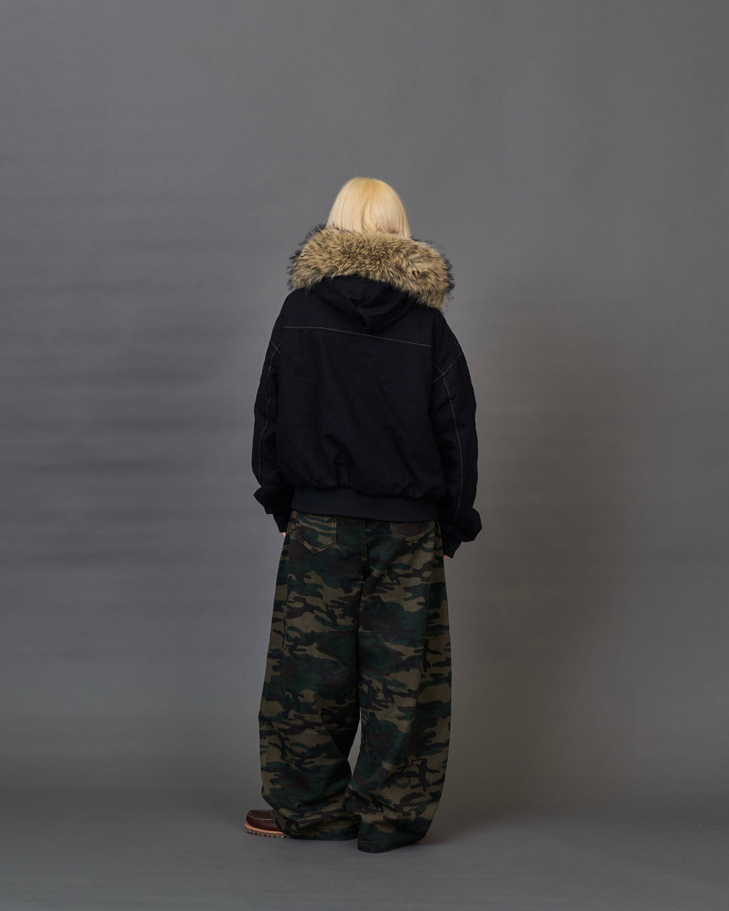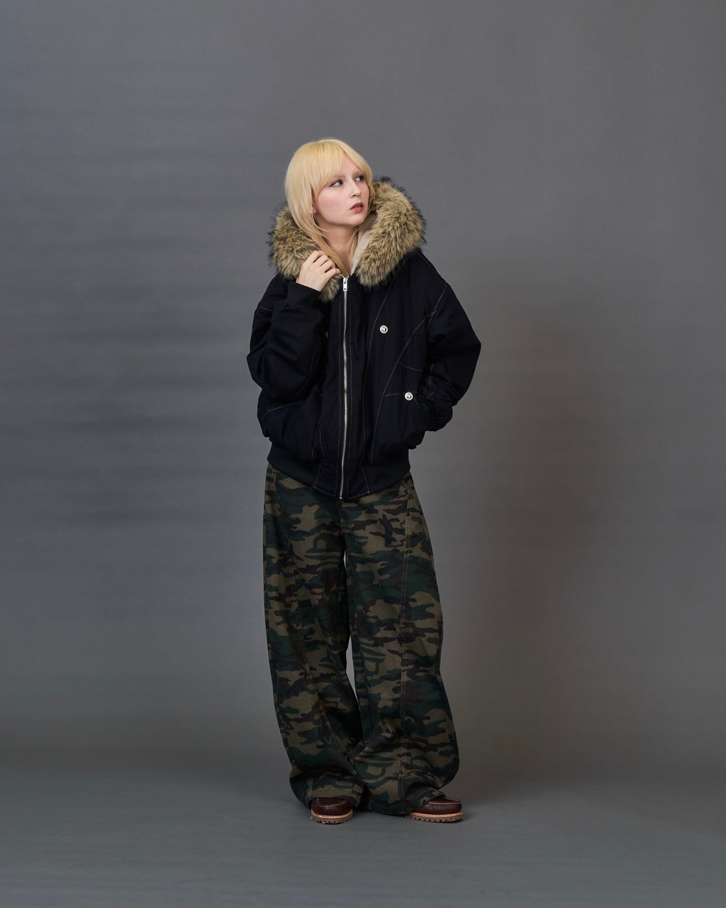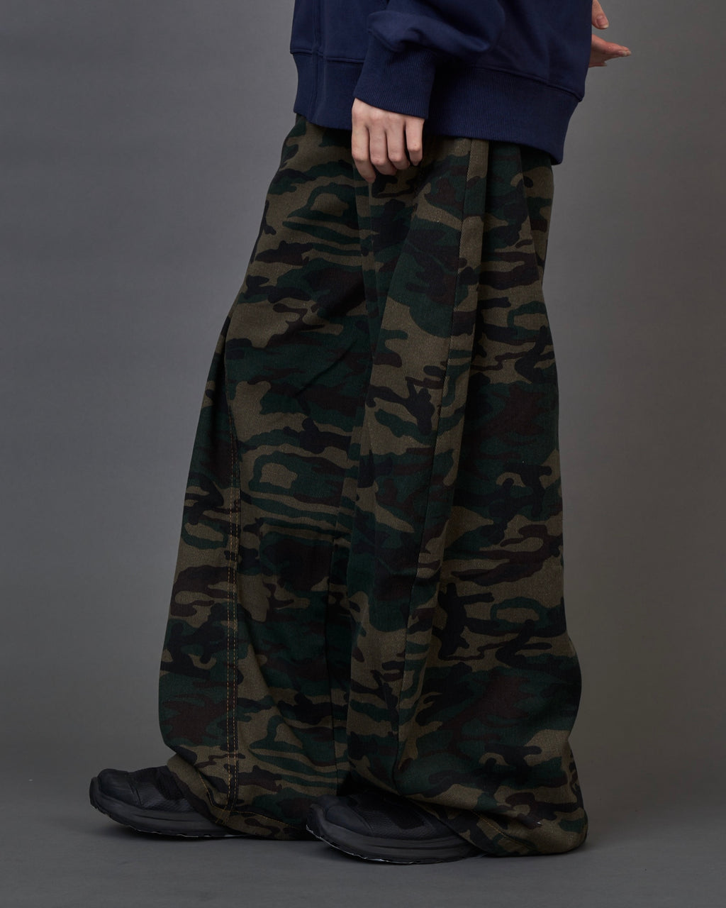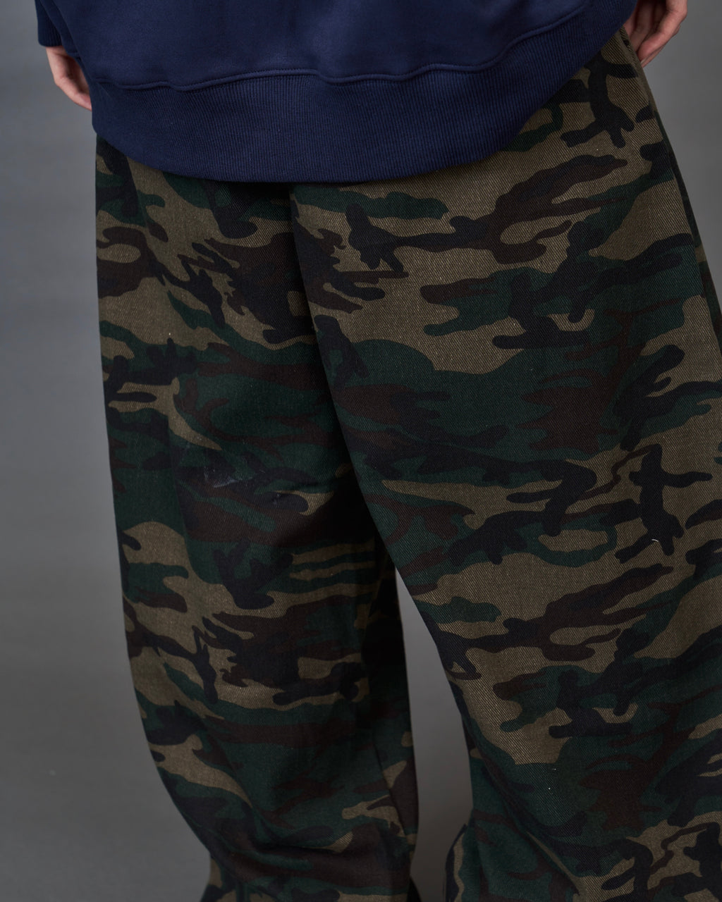 迫力のあるワイドシルエットが特徴のカモフラージュ柄パンツ。存在感のある柄ながら落ち着いたトーンで仕上げており、コーディネートに取り入れやすい一本です。ルーズなシルエットとしっかりとした生地感で、ストリートからミリタリースタイルまで幅広く対応。シンプルなトップスに合わせるだけでスタイリングが完成する主役級アイテムです。