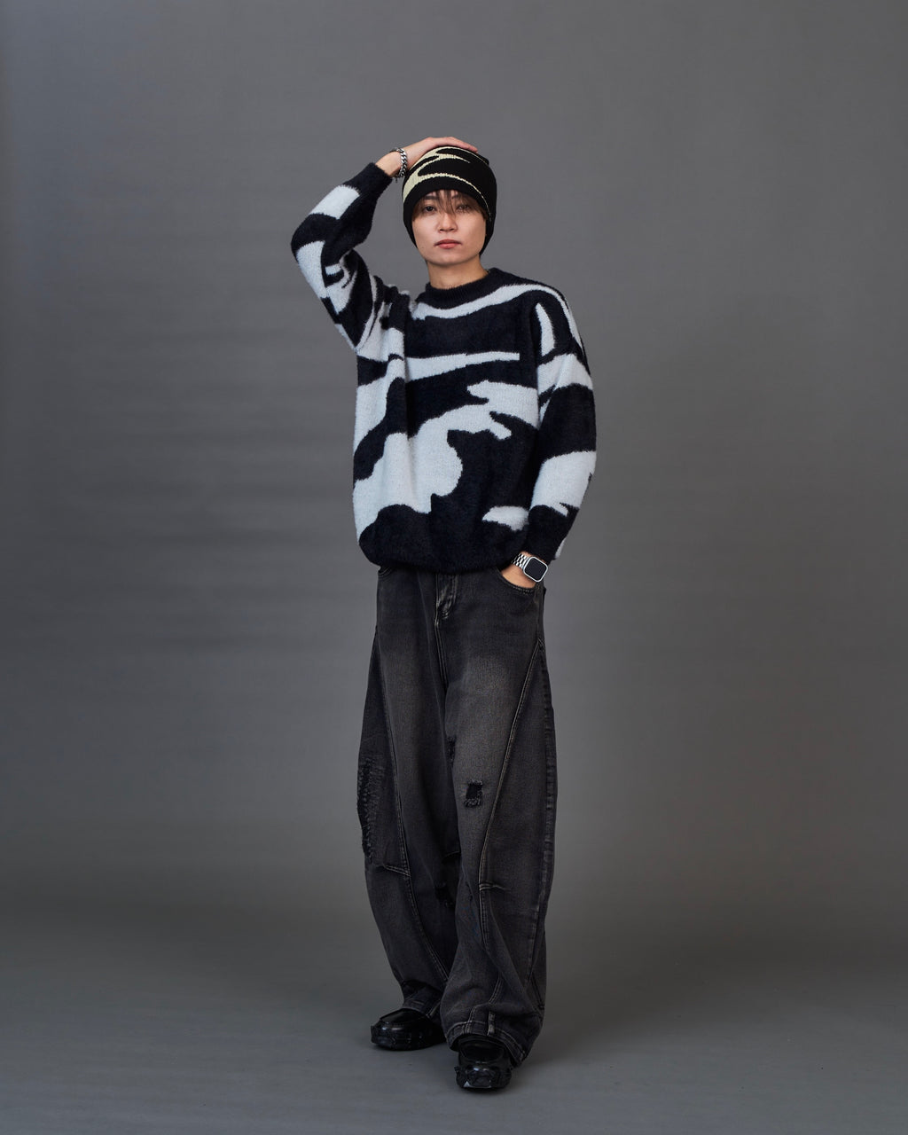AWスタイリングには欠かせないモヘアライクニット。モノトーンで落ち着いた雰囲気で綺麗め、モードなど幅広いスタイルに落とし込めます。
