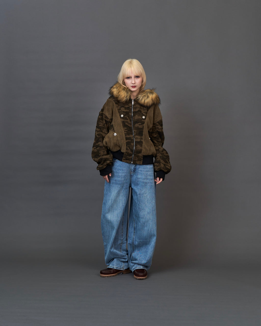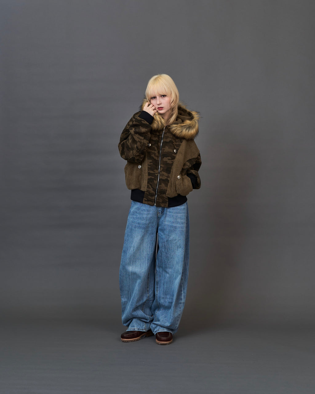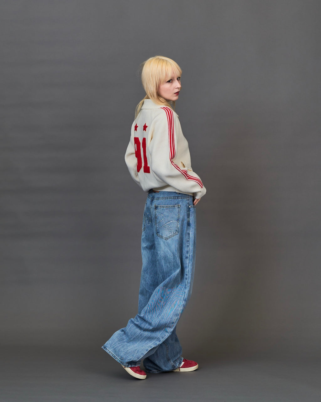 また、ブラックのレザージャケットやオーバーサイズシャツを羽織り、シンプルなTシャツと合わせるだけで、ヴィンテージ感がありながらも今っぽいモード感が漂うスタイルに。 フリルブラウスやドレープ感のあるトップスを合わせ、足元にローファーやヒールをチョイス。ラインストーンのディテールが女性らしさを引き立てるアイテムに。