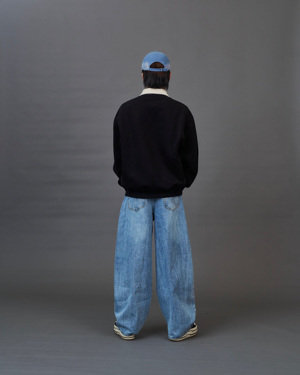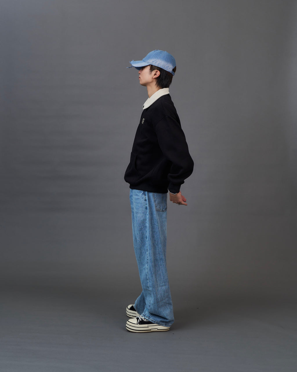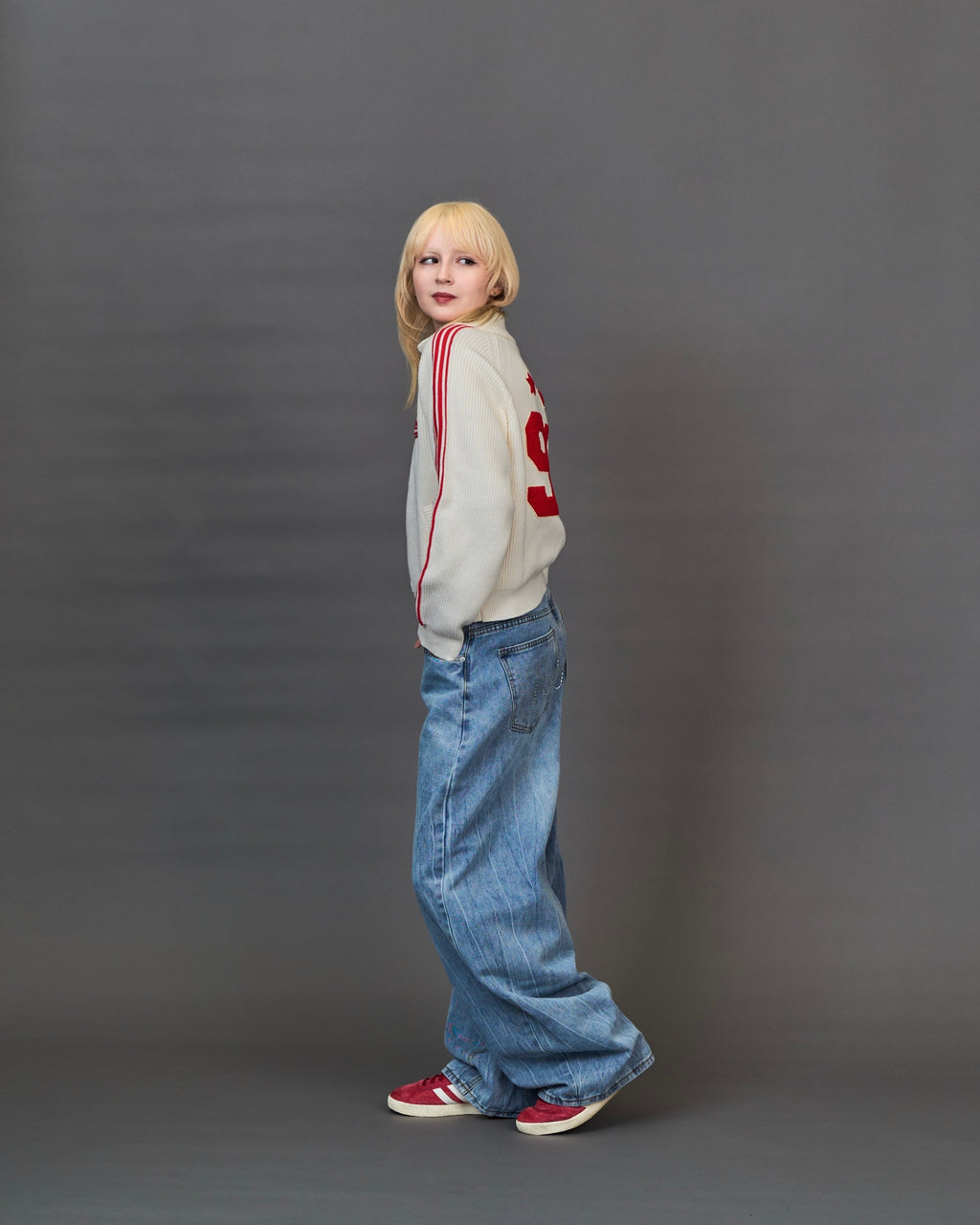 ストライプ入りのリブセーターや、ロゴスウェットを合わせて、スポーツミックスのカジュアルスタイルに。シンプルなスニーカーを合わせれば、ストリート感溢れるコーディネートが完成します。