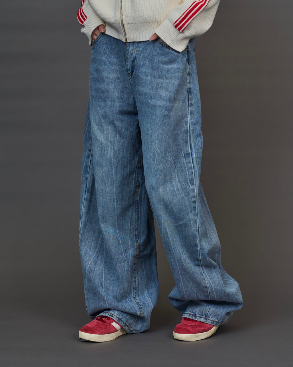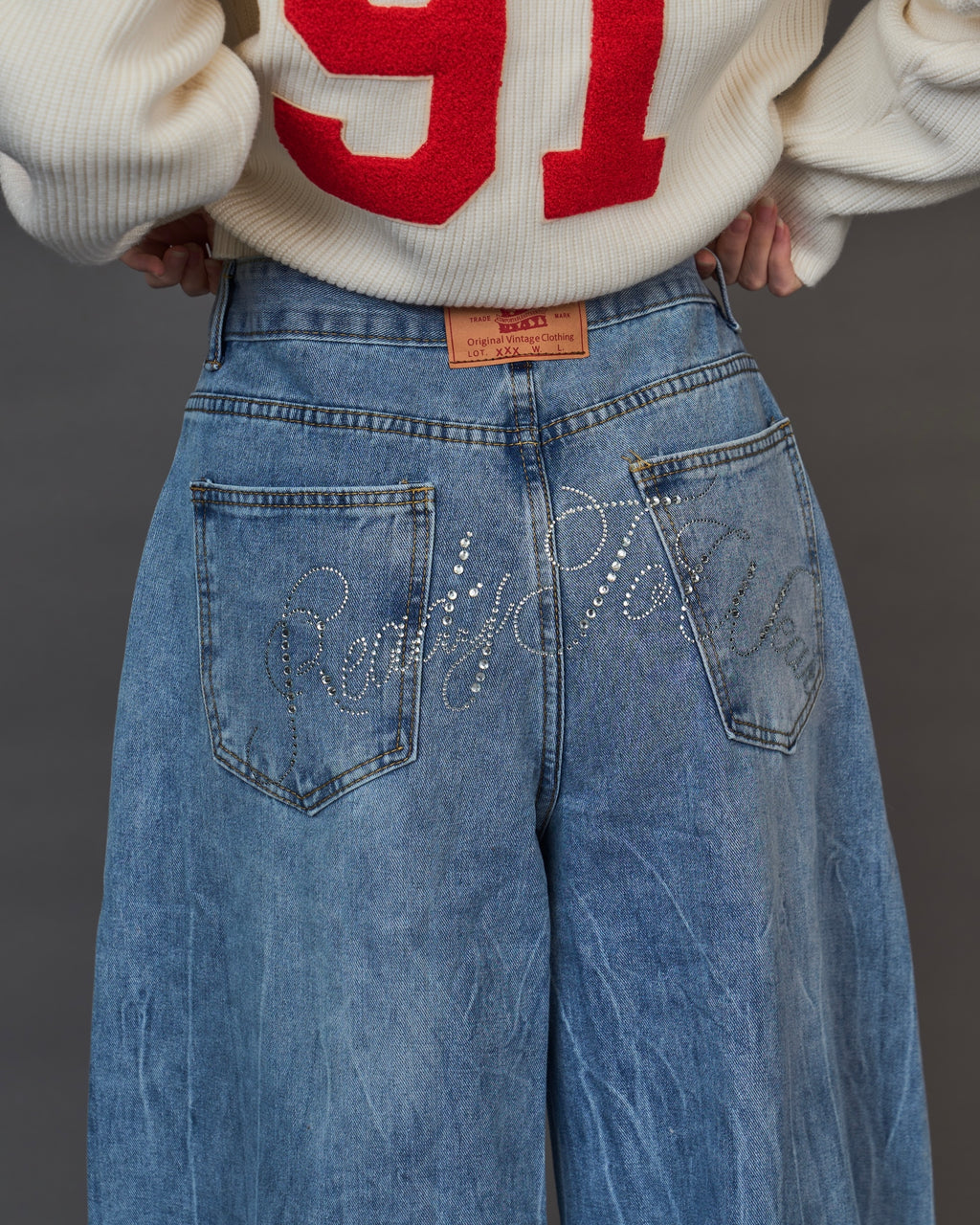 バックポケットに施された「Ready to Shine」のラインストーンが、シンプルながらも個性的なアクセントに。リーバイス風のクラシックなデザインで、どんなスタイルにも合わせやすいアイテムです。ダメージ加工の施されたライトブルーのデニムは、トレンド感がありつつも、長年愛用できる仕上がりです。