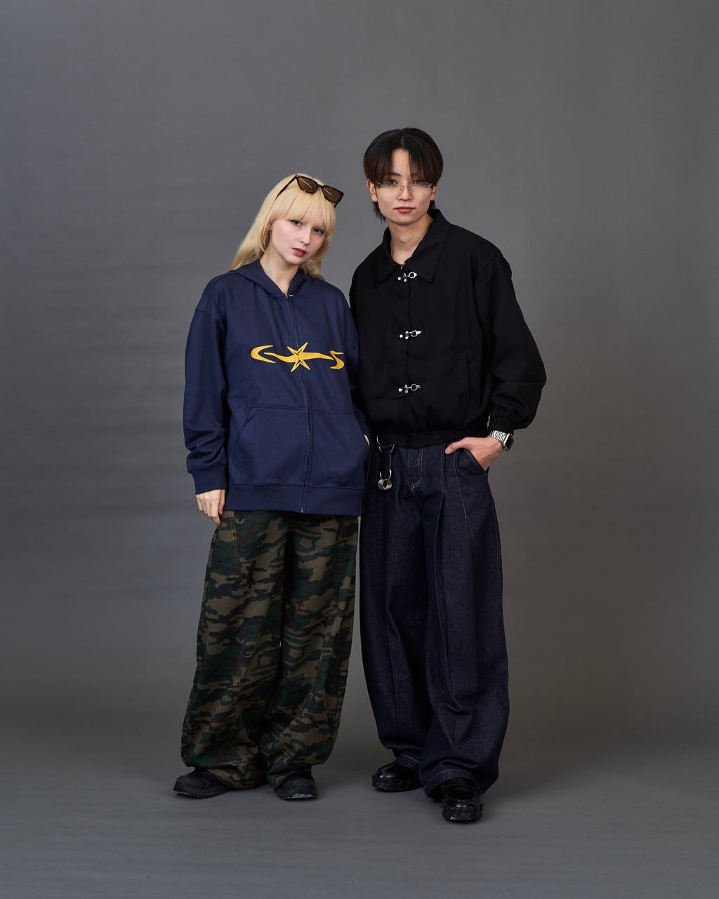 ボリューム感を際立たせるなら、タイトなトラックジャケットやボンバージャケットと合わせるのがおすすめ。シャツをタックインしてレザーローファーを合わせれば、モード感のあるスタイルに。スニーカーやスリッポンを選べば、ストリートライクな雰囲気も楽しめます